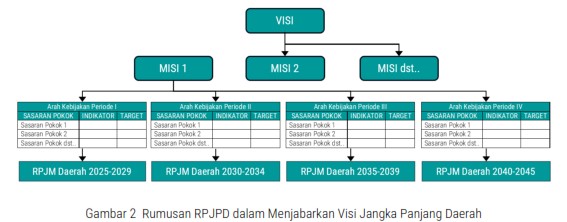 Rencana Pembangunan Jangka Panjang Daerah (RPJPD) merupakan penjabaran dari visi dan misi, arah kebijakan, dan sasaran pokok pembangunan daerah jangka panjang untuk 20 (dua puluh) tahun yang disusun dengan berpedoman pada Rencana Pembangunan Jangka Panjang Nasional (RPJPN) dan Rencana Tata Ruang Wilayah (RTRW). RPJPD Tahun 2025-2045 diarahkan sebagai upaya mendukung pencapaian tujuan pembangunan nasional dalam mewujudkan kesejahteraan masyarakat daerah yang berkeadilan dengan menempatkan manusia sebagai objek dan subjek pembangunan. Hal tersebut didasarkan pada prinsip hak asasi bahwa dalam mewujudkan kesejahteraan yang berkeadilan, Pemerintah Daerah harus menitikberatkan masyarakat sebagai objek dan subjek pembangunan.